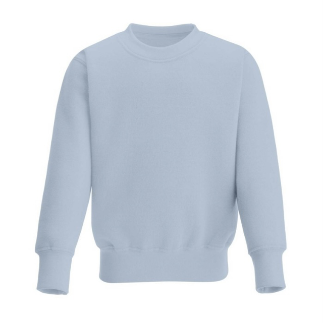 Baby / Toddler fleece crew neck sweat shirt with fine knit rib cuffs and hem. 60% cotton and 40% polyester