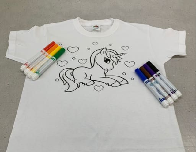 Your child can colour the design in and then the t shirt can be washed and coloured in again
