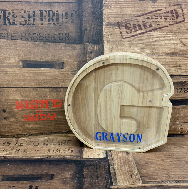 Wooden letter which can be filled with coins