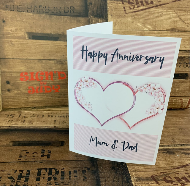 Happy anniversary mum and dad hearts card