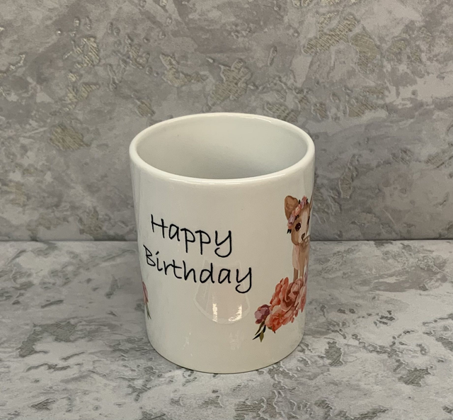 Happy birthday mug with baby deer