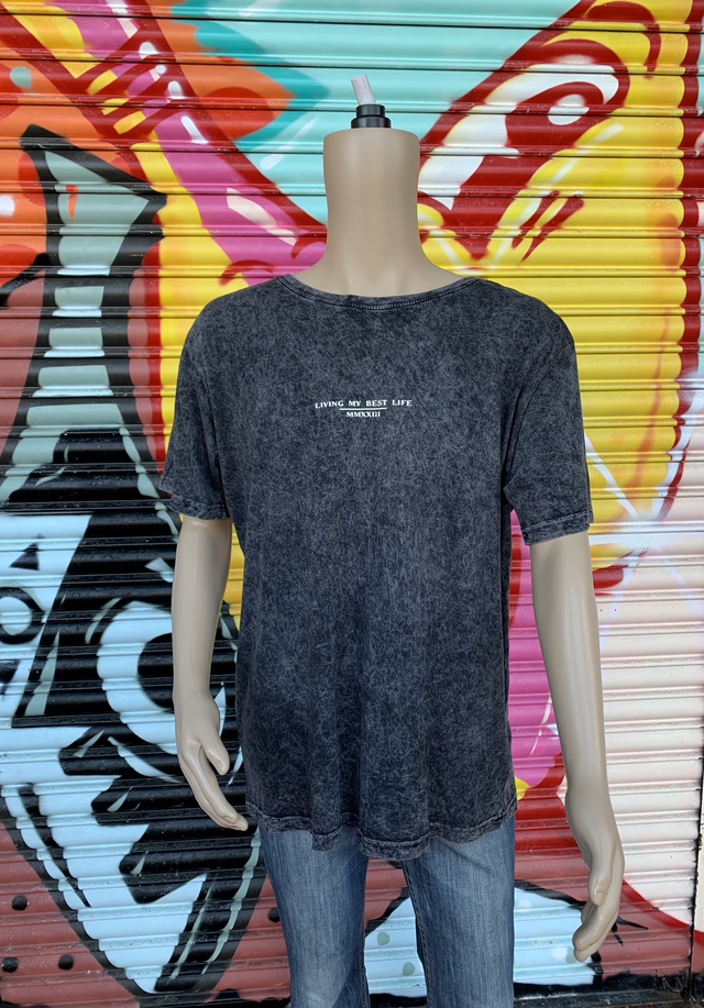 Acid wash T-shirt available in 3 sizes.