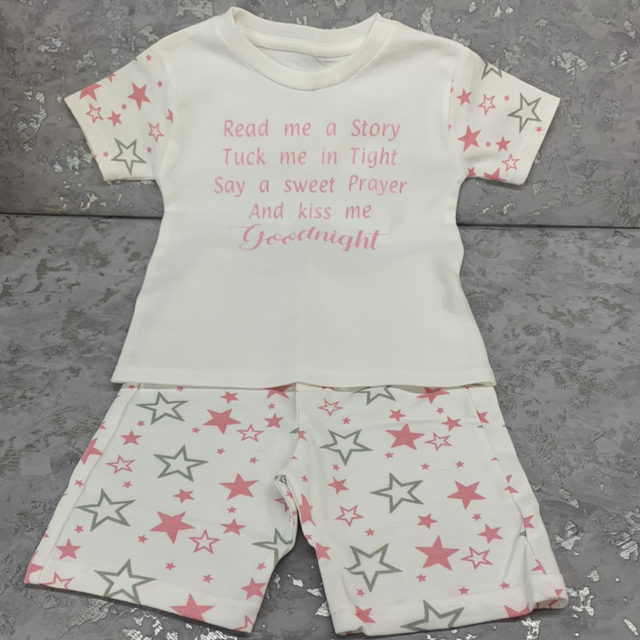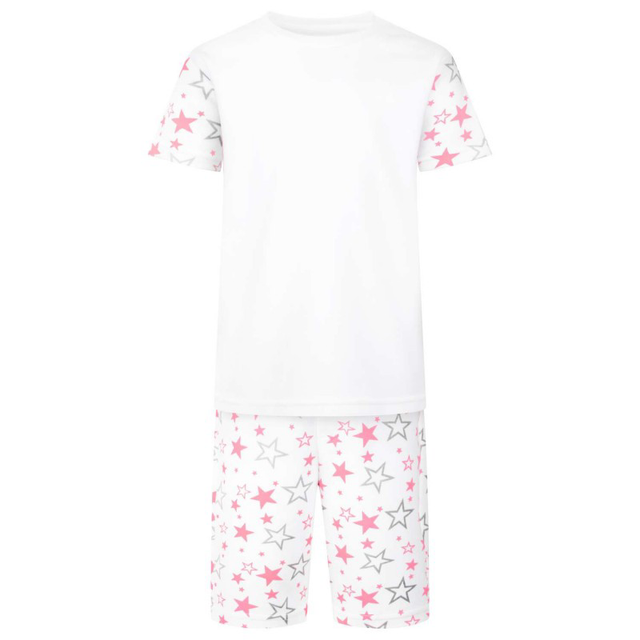 pink star print childs shorts pyjama set